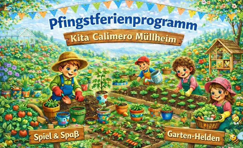 In den Pfingstferien vom 18. – 22. Mai 2026 dreht sich in unserer Kita alles rund um Gemüse, Pflanzen und den Garten. Gemeinsam werden wir ackern, bepflanzen und die Natur entdecken!
